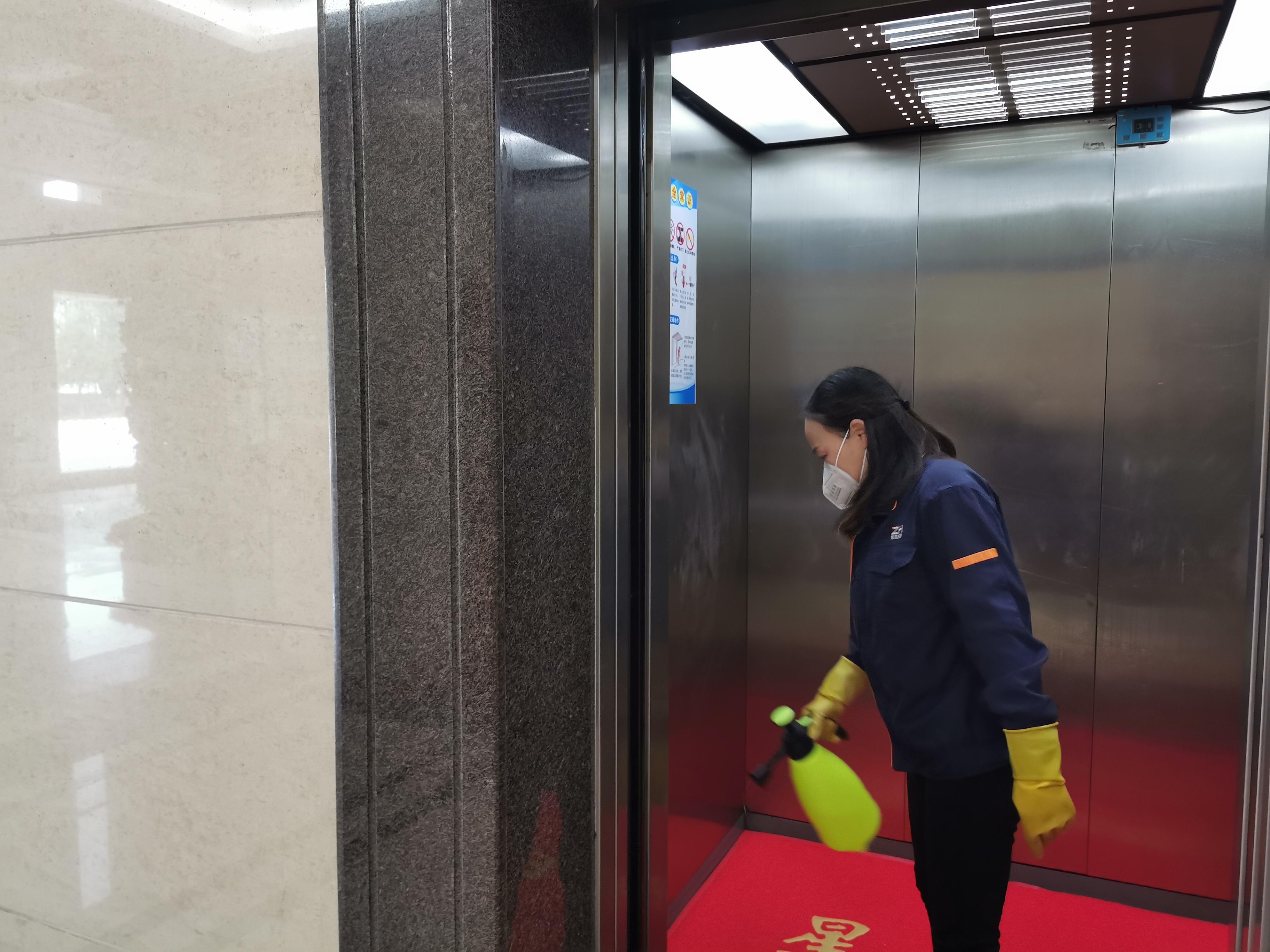 澳克泰公司保安肖小冬坚持每日对公共场所喷洒消毒